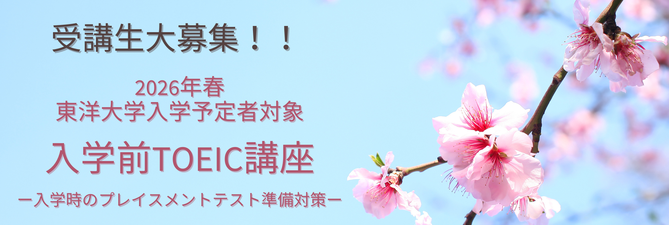 2026年春東洋大学入学予定者対象 入学前TOEIC講座の募集チラシは準備中です。