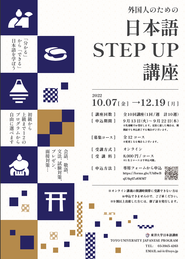 【学外一般向け】2022秋学期 東洋大学日本語STEP UP講座開講のお知らせ