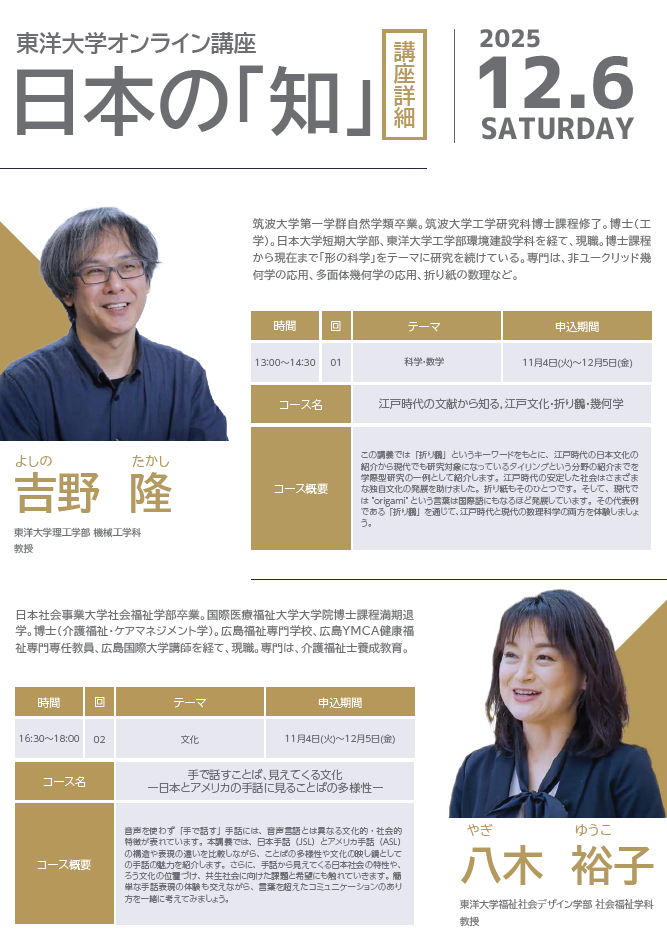 💡2025年度東洋大学オンライン講座 日本の「知」💡