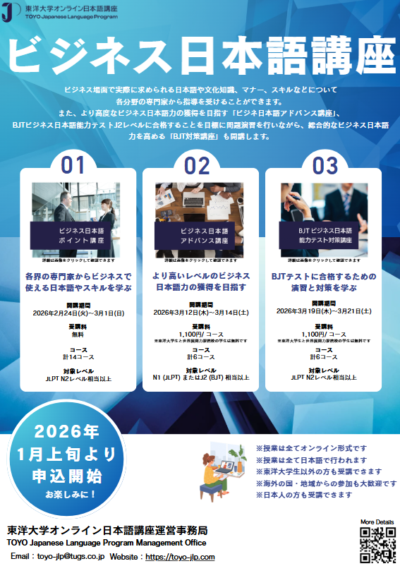 ★開講決定★東洋大学2026春季ビジネス日本語ポイント講座/ アドバンス講座/ BJT対策講座を開講します