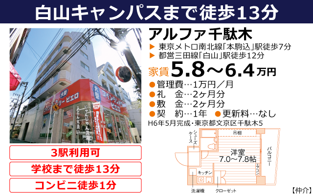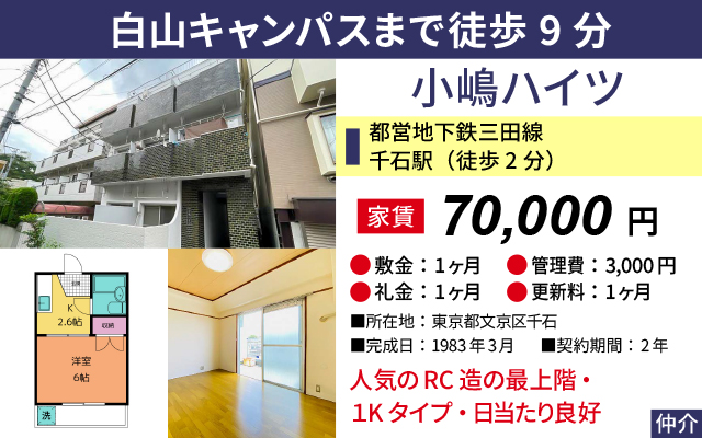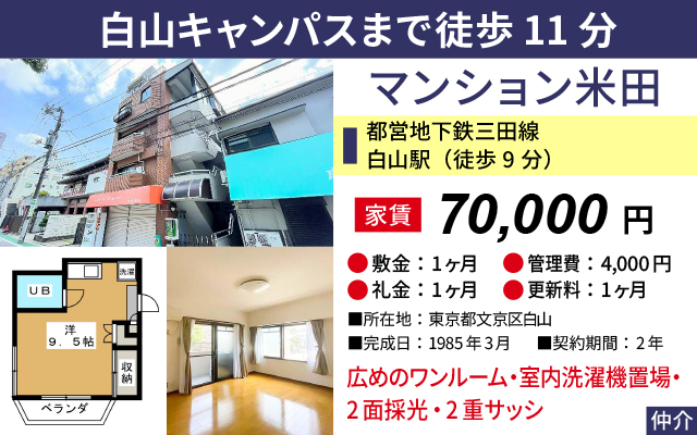 ・白山駅 (都営地下鉄三田線) 徒歩5分