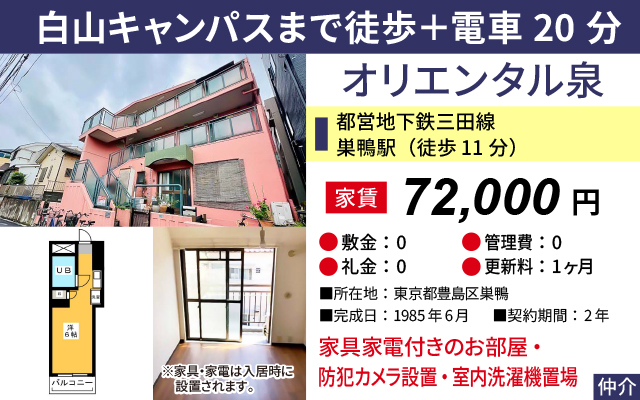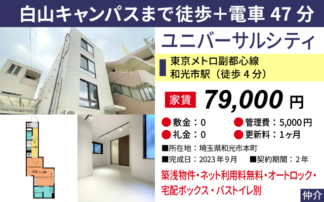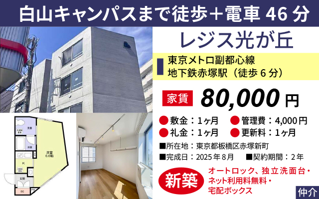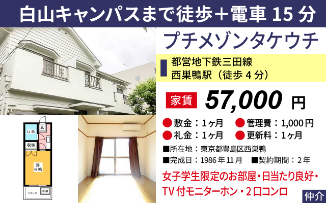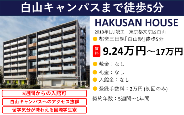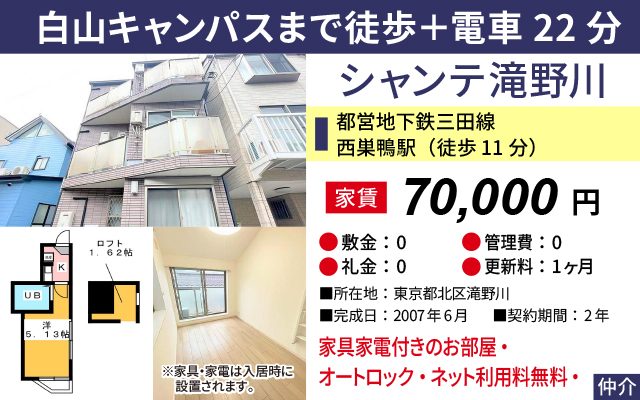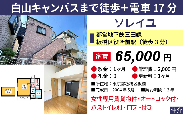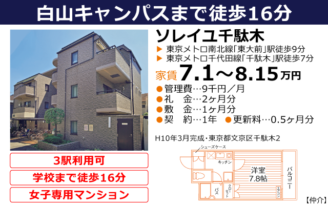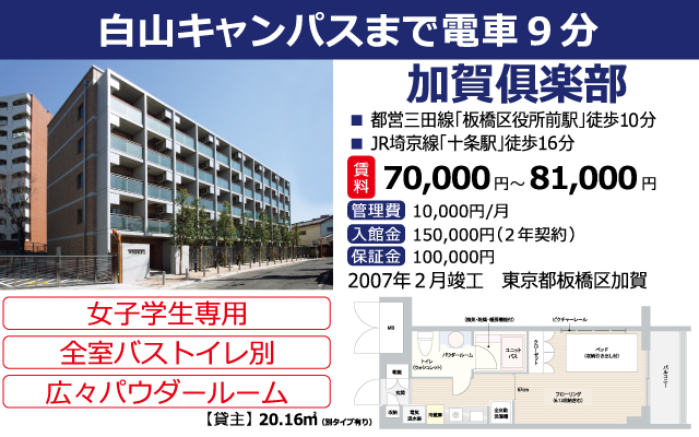 【学生マンション・学生会館・アパート紹介】白山キャンパスの物件検索 2026年度
