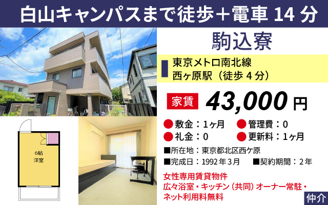 ・本駒込駅 (東京メトロ南北線) 徒歩5分