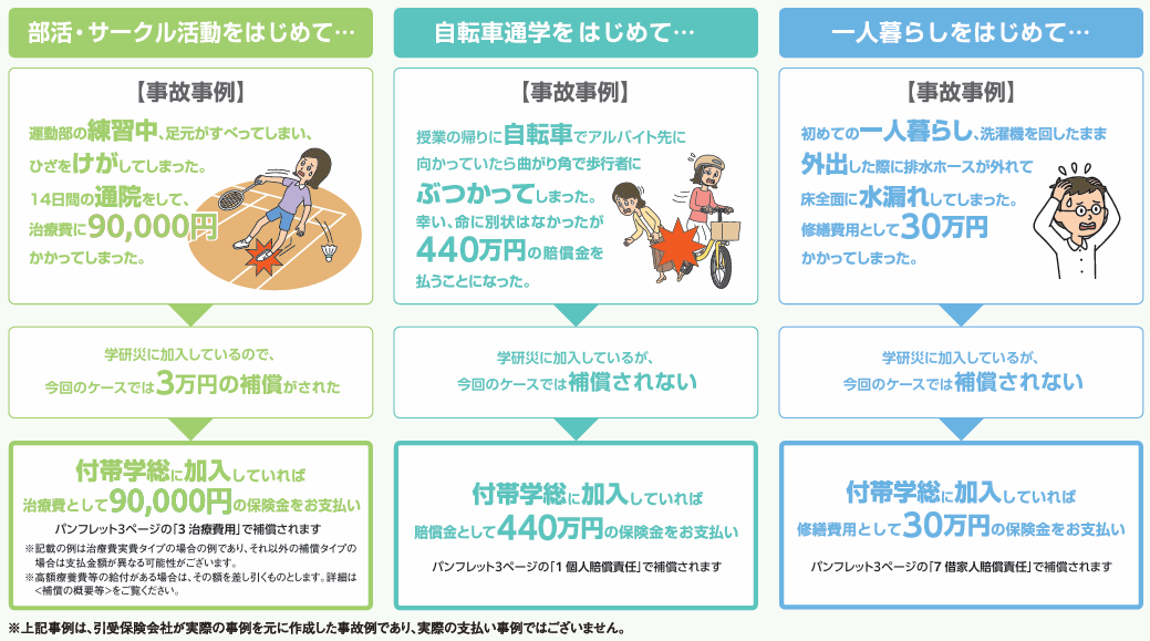 学研災付帯学生生活総合保険(以下「付帯学総」という)は、