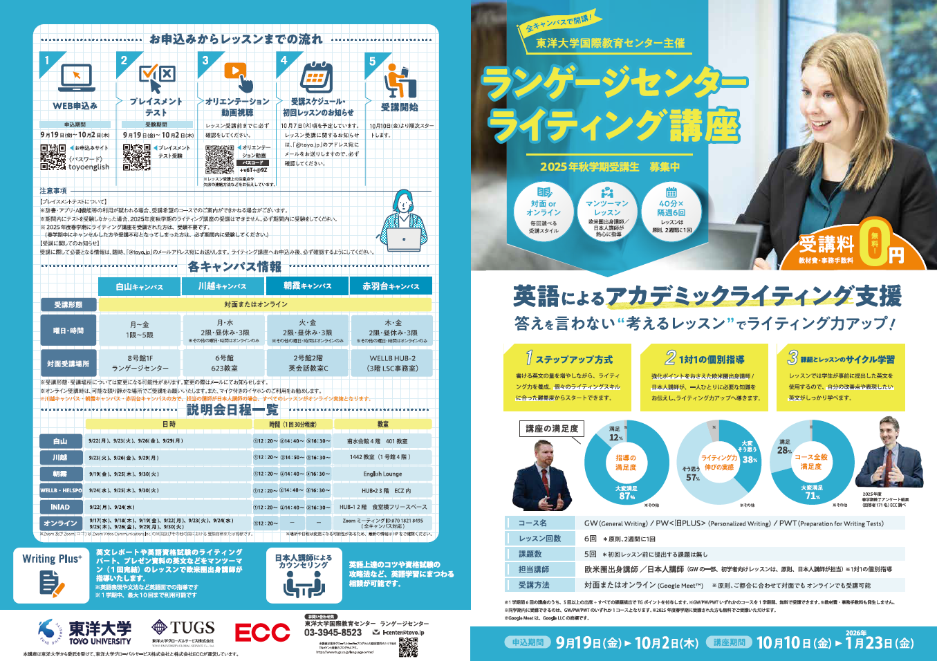 ランゲージセンターおよびToyo Achieve English英語講座※の説明会を合同で行います。