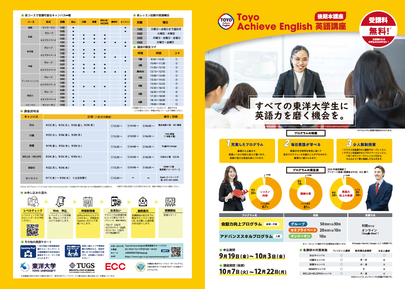 Toyo Achieve English英語講座およびランゲージセンター※の説明会を合同で行います。